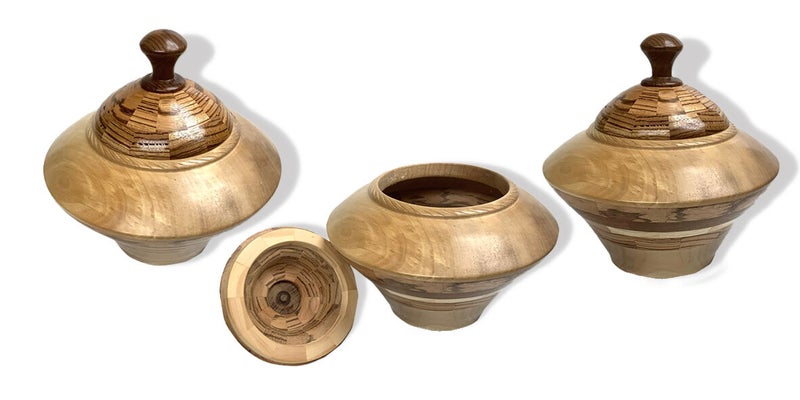 Schaal Iepenhout met segment ringen en deksel