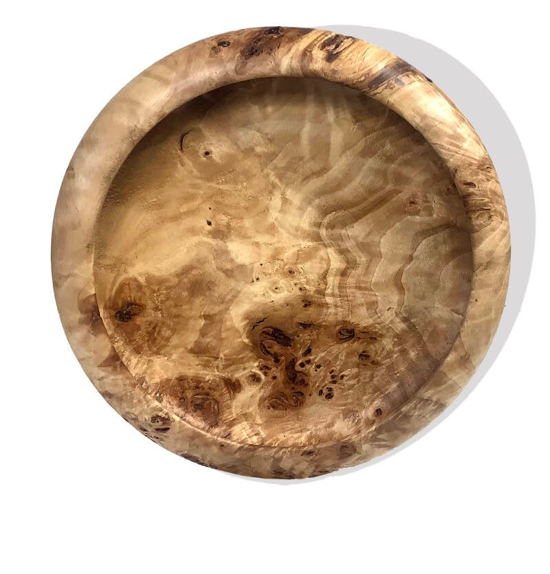 Schaal mapple burl, 40 cm diam, 7 cm dik afwerking 4 lagen Danish oil