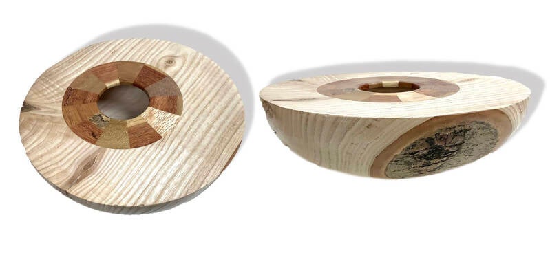Schaal essenhout excentrisch met ingelegde ring, diam. 20 cm Te koop